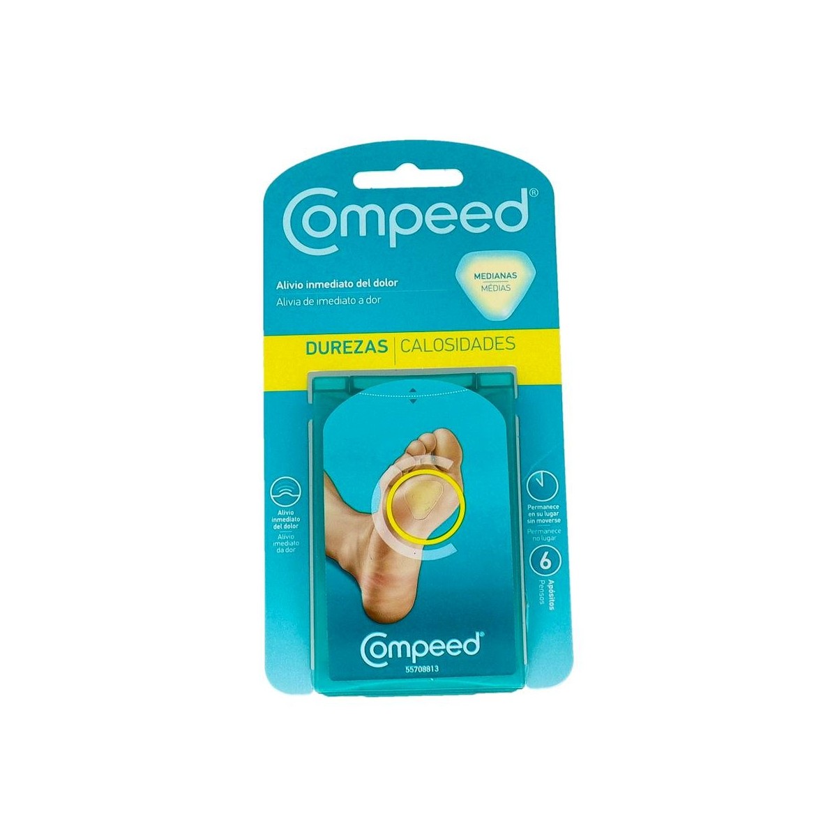 Los apósitos Compeed Durezas proporcionan un alivio inmediato del dolor al formar una segunda piel que protege contra la fricción y la presión.