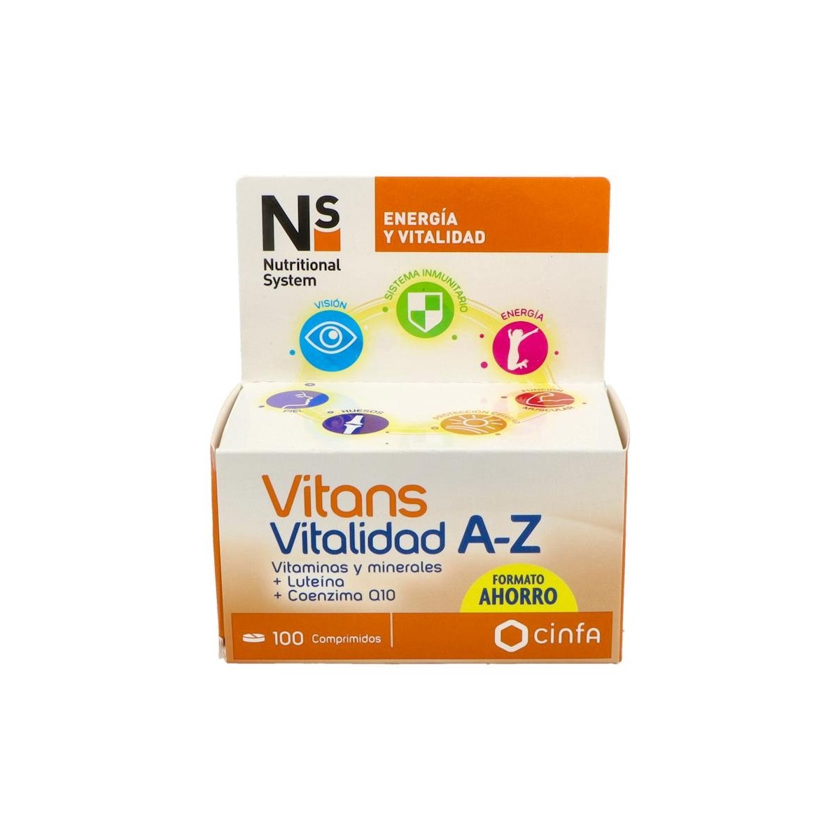 Ns Vitans Vitalidad A-Z 100C es un complejo vitamínico integral, que proporciona una amplia gama de vitaminas de la A a la Z en una dosis equilibrada y optimizada.